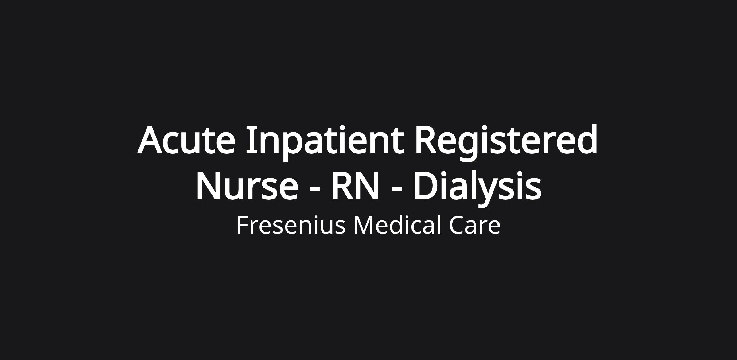 Acute Inpatient Registered Nurse - RN - Dialysis