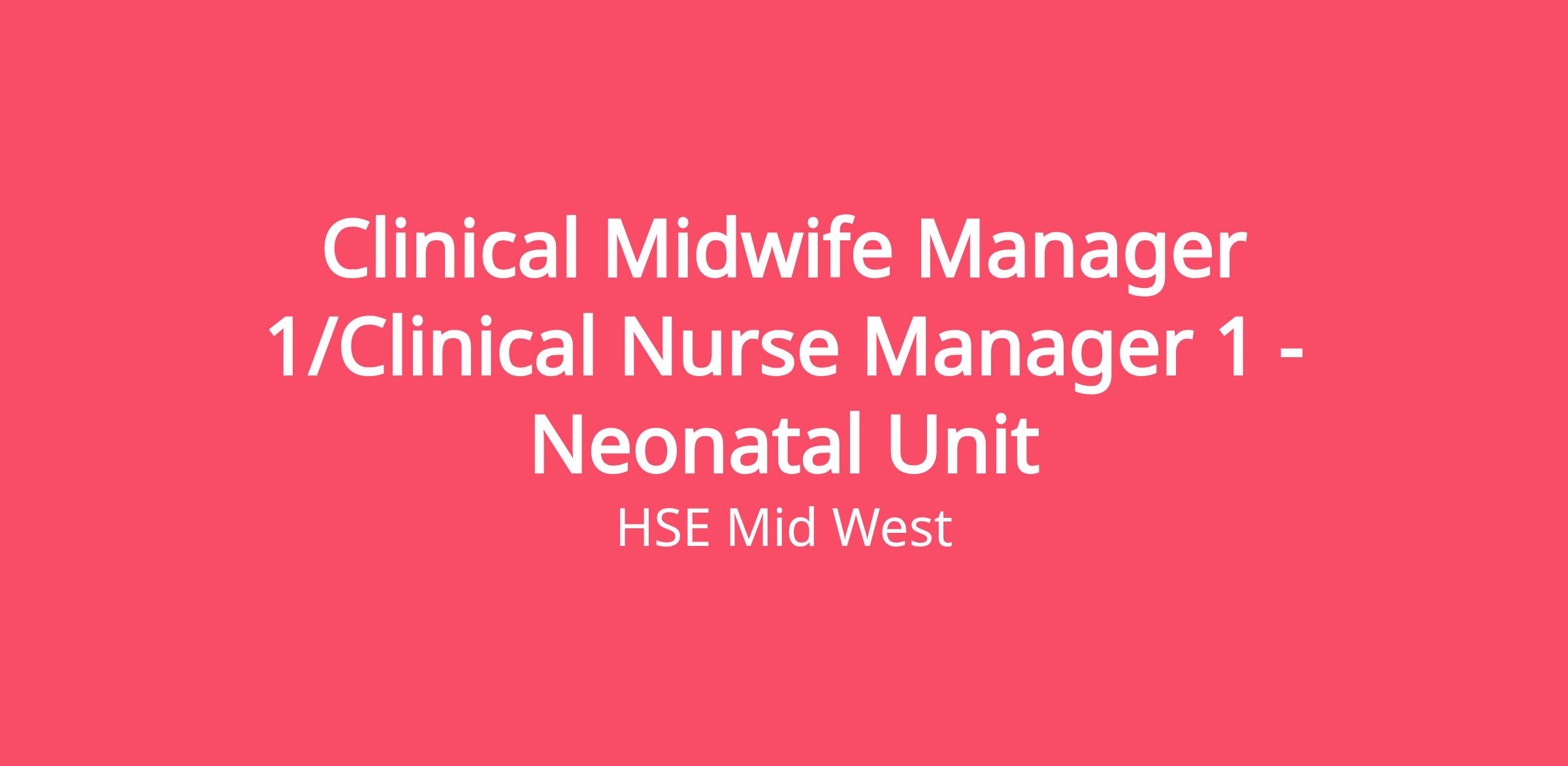 Clinical Midwife Manager 1/Clinical Nurse Manager 1 – Neonatal Unit