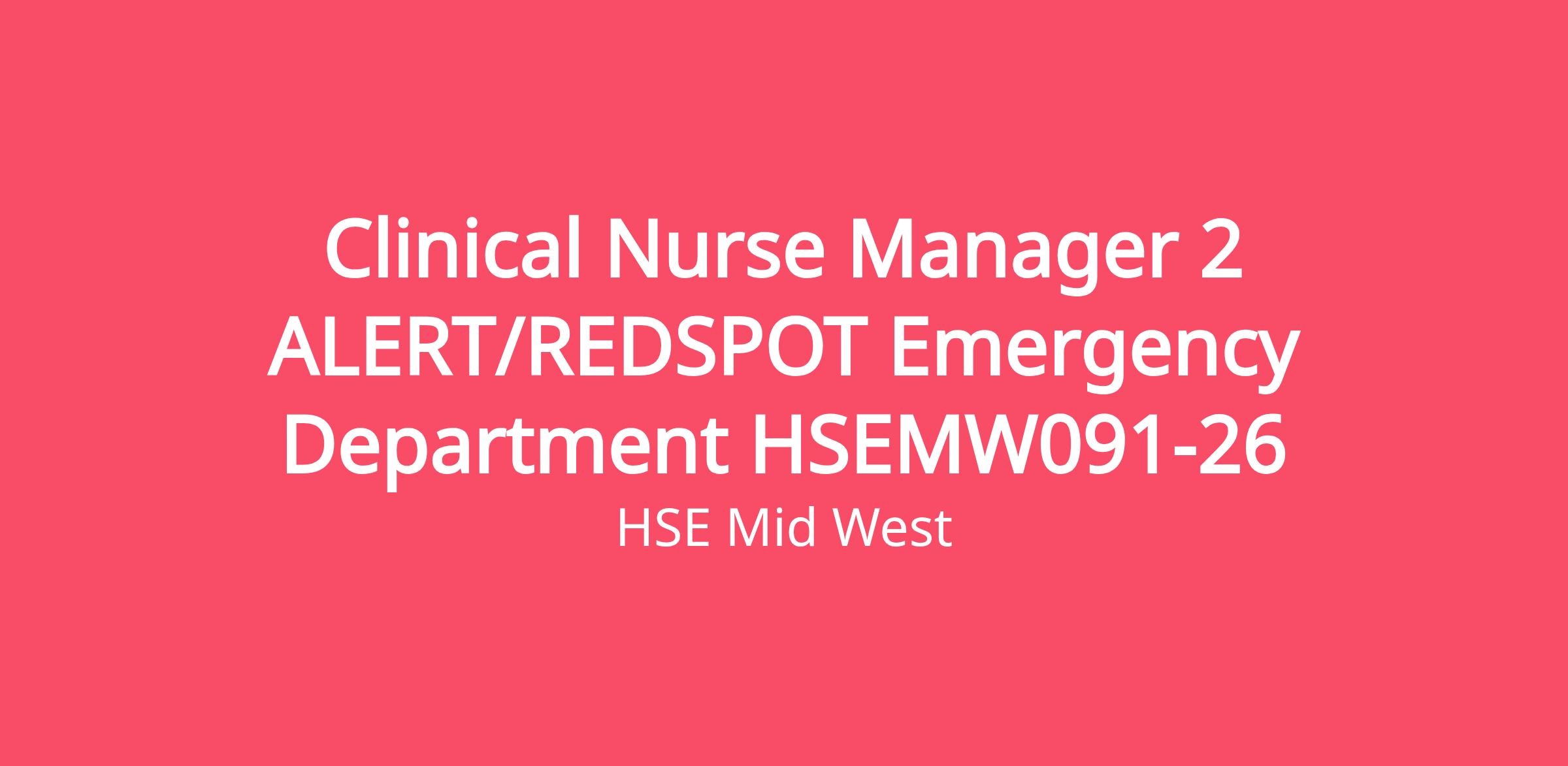 Clinical Nurse Manager 2 (Altrabainisteoir Cliniciúil 2) – ALERT/REDSPOT Emergency Department