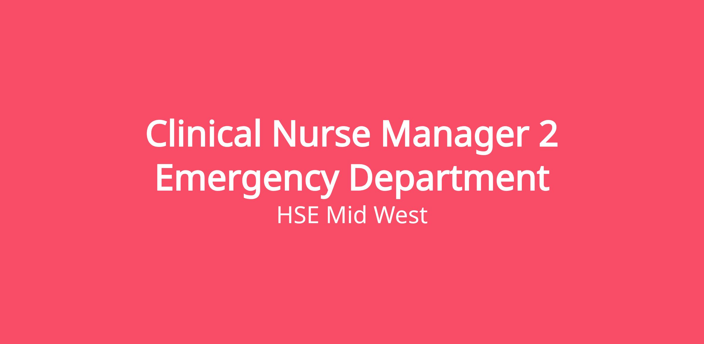 Clinical Nurse Manager 2 (Altrabainisteoir Cliniciúil 2) – Emergency Department