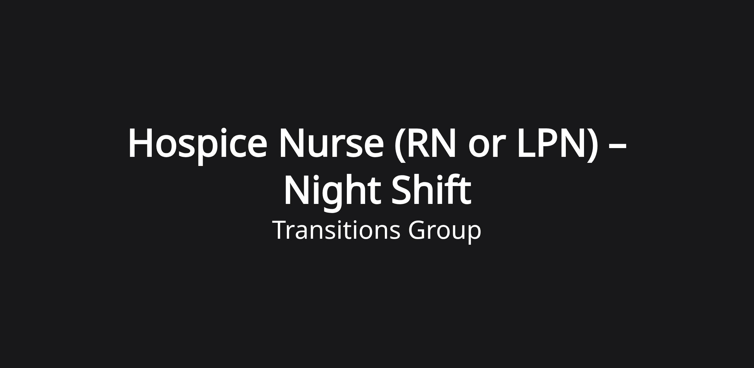 Transitions Care is a leading hospice organization that has changed the hospice experience for patients, families, and team members. Imagine a healthcare company that provides 24/7 access to services in the comfort of the patient's home - providing the physical, emotional, and spiritual support that allows a patient to focus on living.