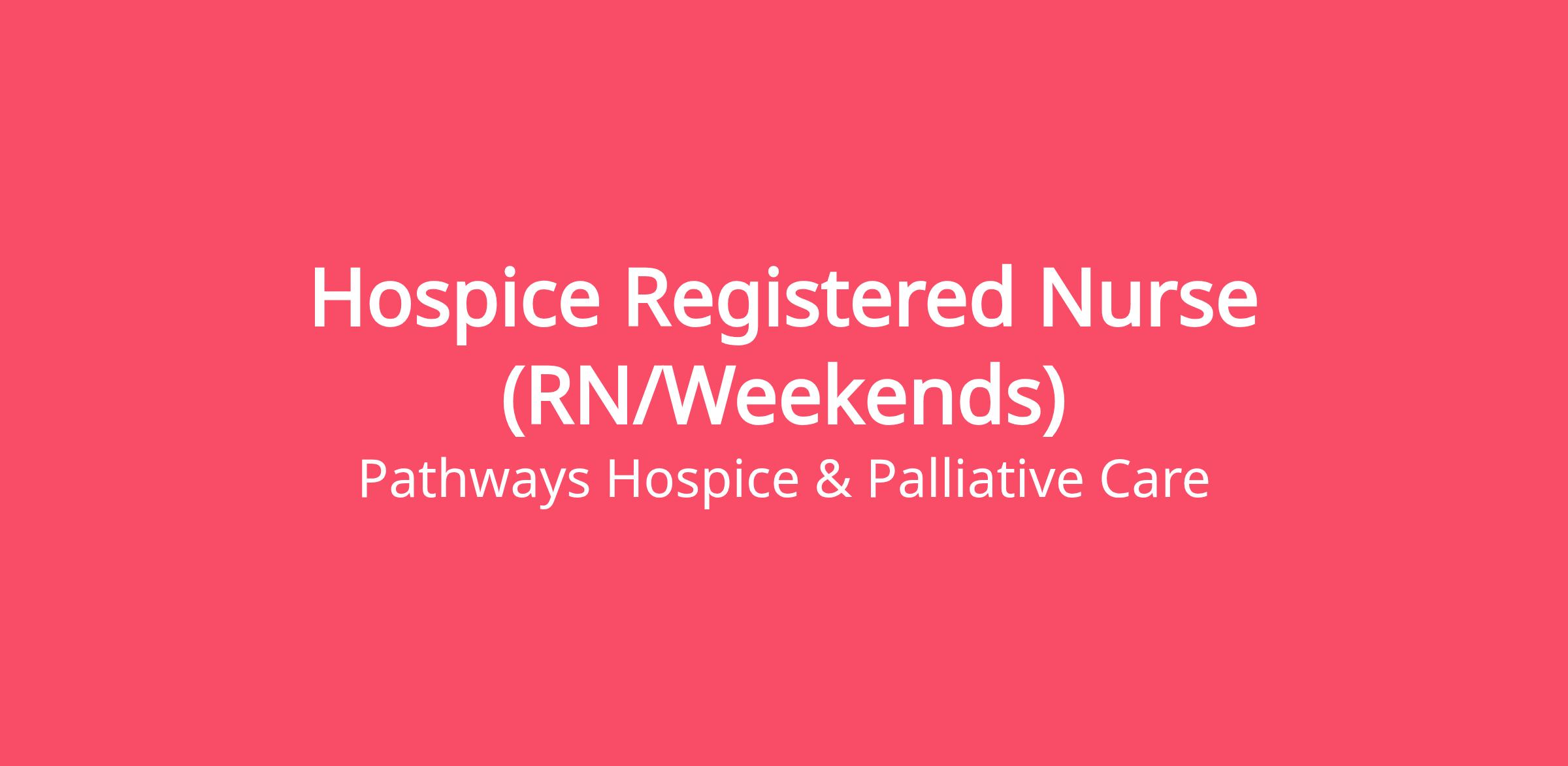 For over 25 years, Pathways Hospice & Palliative Care has been enhancing the lives of patients and their families by combining the most advanced medical care with a focus on compassion and comfort. We are seeking Hospice RNs for Weekends Only and offer a highly competitive salary!