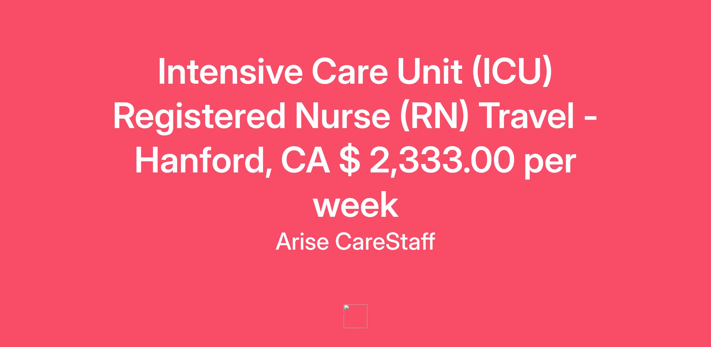 Intensive Care Unit (ICU) Registered Nurse (RN) Travel - Hanford, CA $ 2,333.00 per week