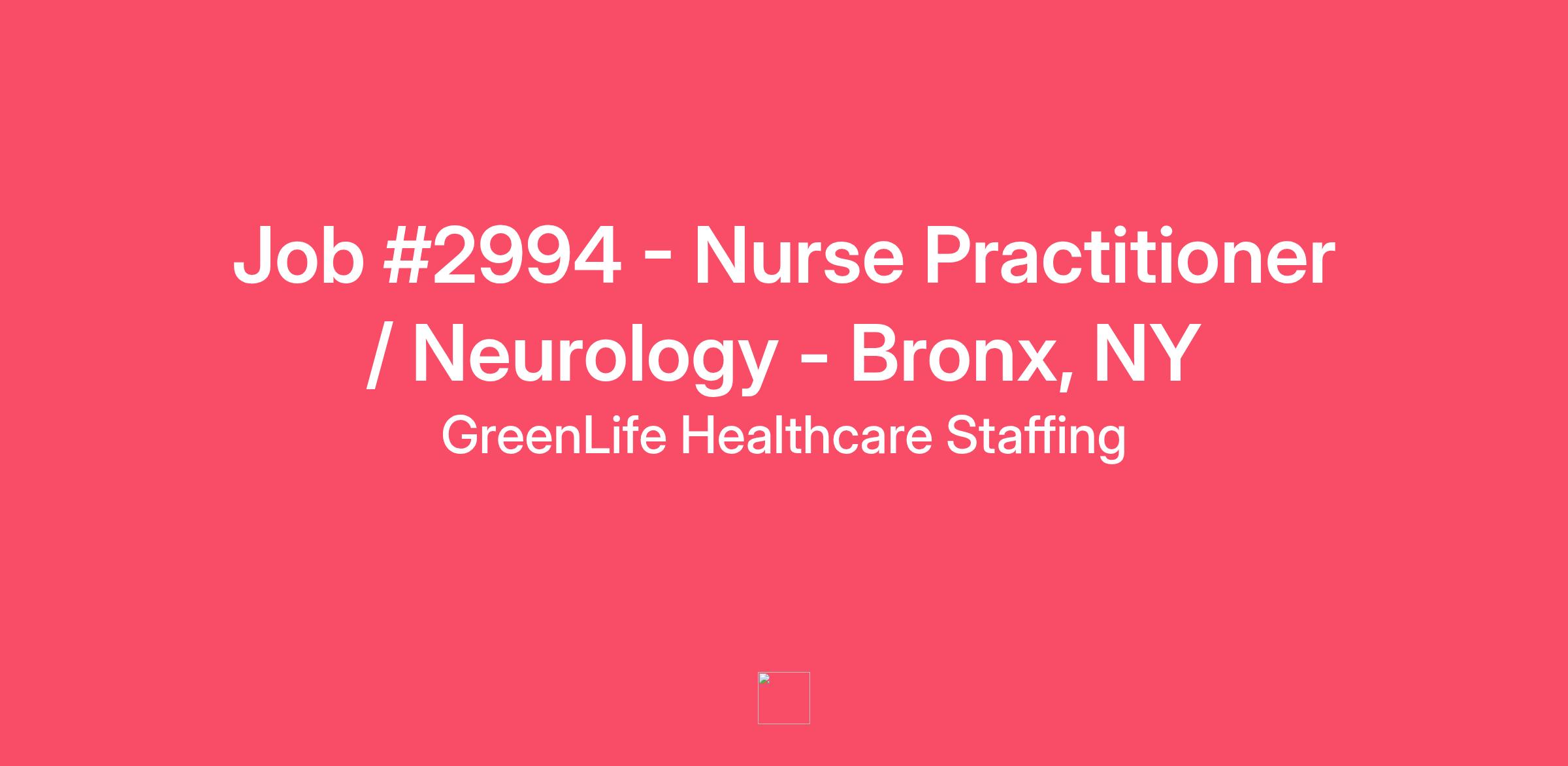 JOB TITLE (#2994): Nurse Practitioner/ Neurology - Bronx, NY