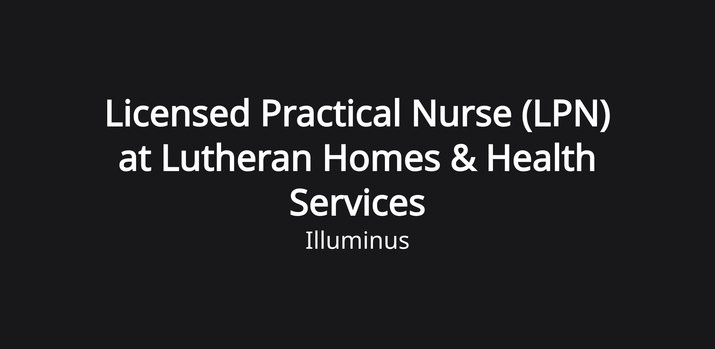 Licensed Practical Nurse LPN at Lutheran Homes & Health Services - FT, PT or Casual for AM, PM or Night Shifts