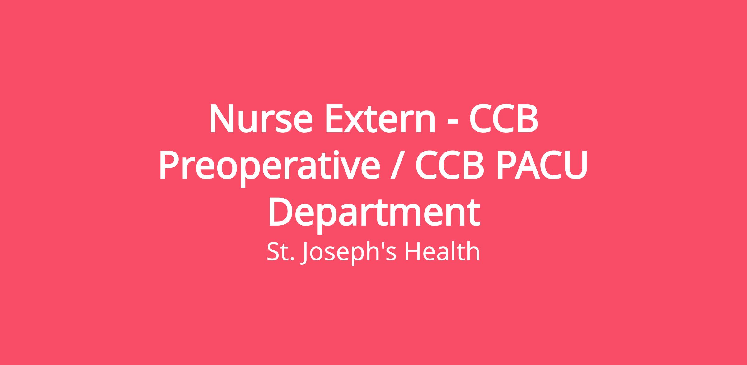Nurse Extern - CCB Preoperative / CCB PACU Department