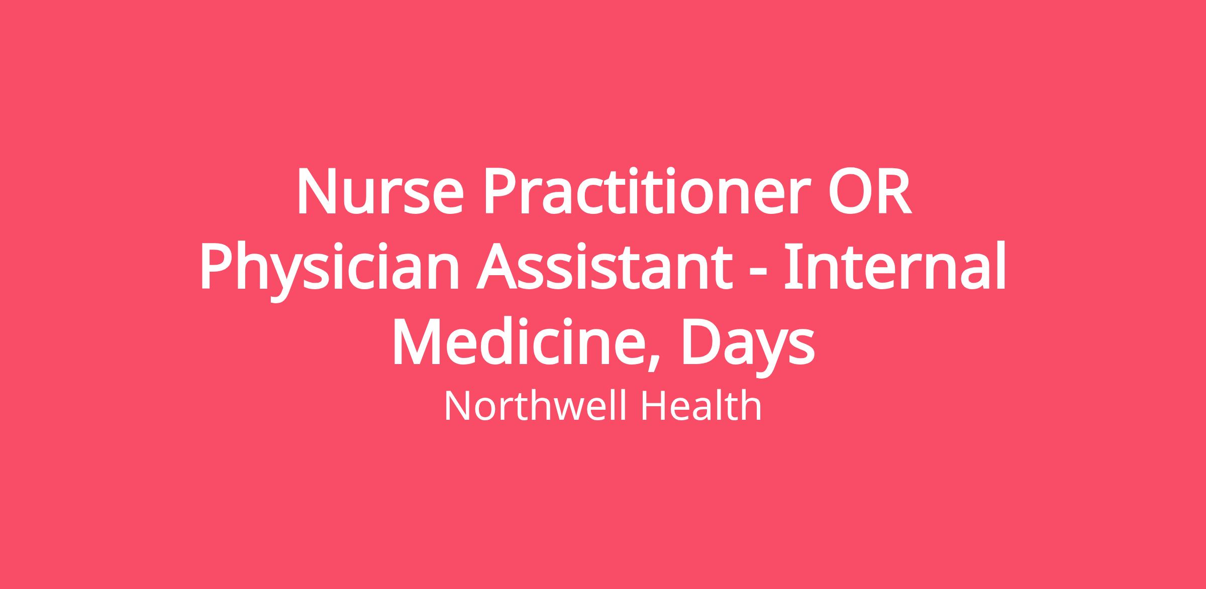 Nurse Practitioner OR Physician Assistant - Internal Medicine, Days