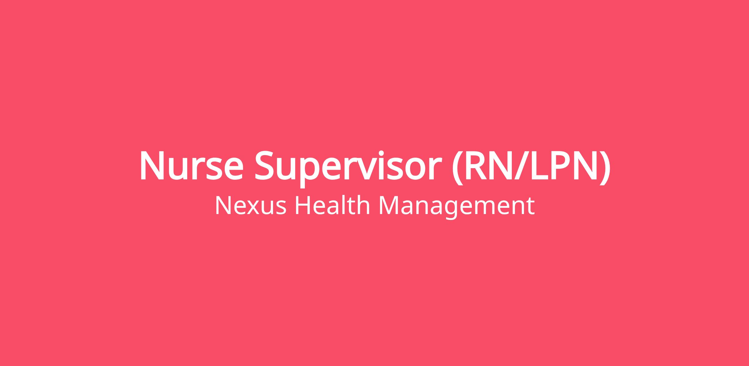 Nurse Supervisor (RN/LPN) Qualifications: