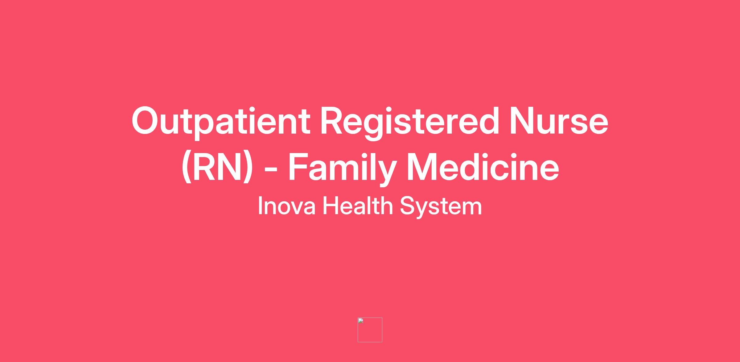 Inova Family Medicine Services is looking for a dedicated Outpatient Registered Nurse (RN) to join the team. This role will be full time day shift from Monday – Friday, 8:00am – 5:00pm.