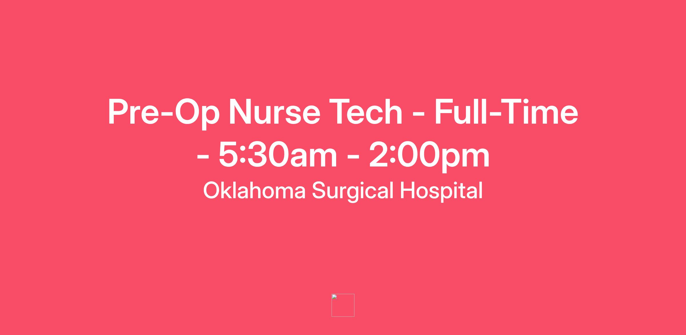 As a full-time Pre-Op Nurse Tech, you will work Mondays - Friday from 5:30am- 2:00pm. This position comes with our full benefits package and is eligible for our rewarding discretionary quarterly bonuses!