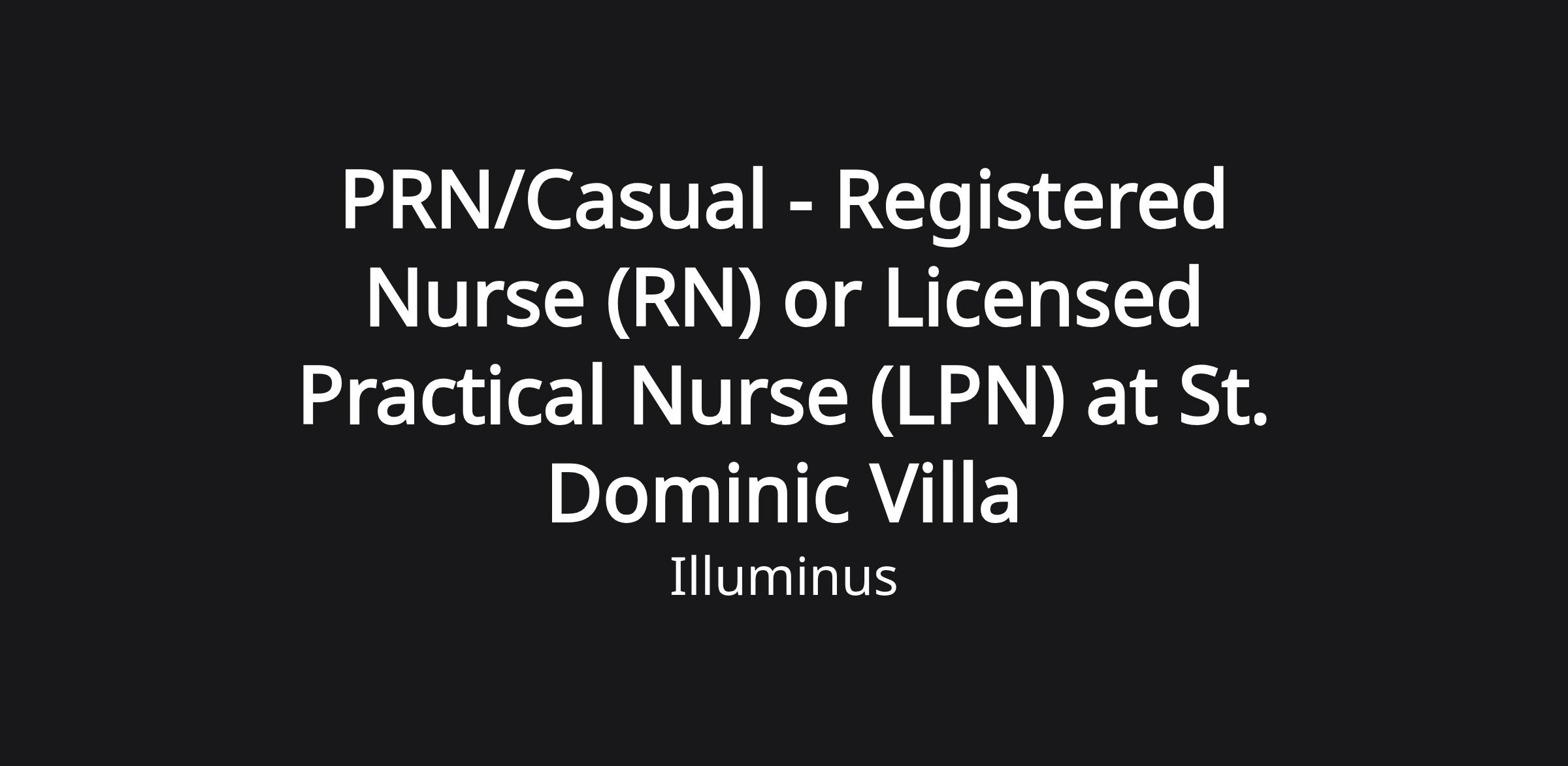 St. Dominic Villa, an Illuminus Community, is hiring PRN Registered Nurse (RN) or Licensed Practical Nurse (LPN). We are located among the rolling hills of the picturesque driftless region in southwest Wisconsin, just south of Platteville and a short 10-minute drive from Dubuque, Iowa. Open to all, St. Dominic Villa offers long-term skilled nursing care and short-term rehab to older adults and is a truly peaceful place to live and work.