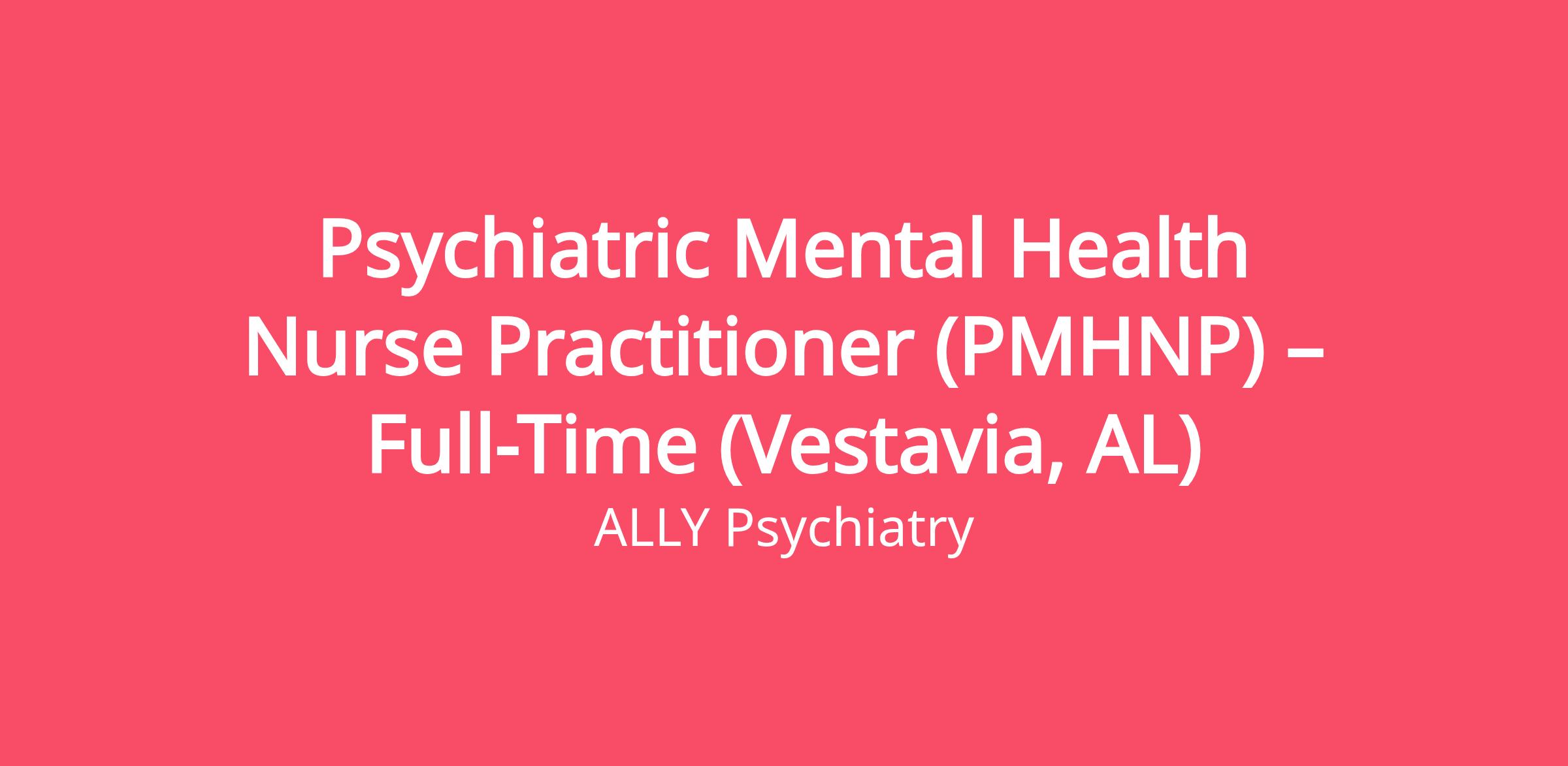 Ally Psychiatry is seeking a compassionate and skilled Psychiatric Mental Health Nurse Practitioner (PMHNP) to join our outpatient clinic in Vestavia, AL. You will provide high-quality, patient-centered psychiatric care in a collaborative, supportive team environment. Our practice focuses on comprehensive outpatient mental health treatment — with opportunities for professional growth and excellent work-life balance.