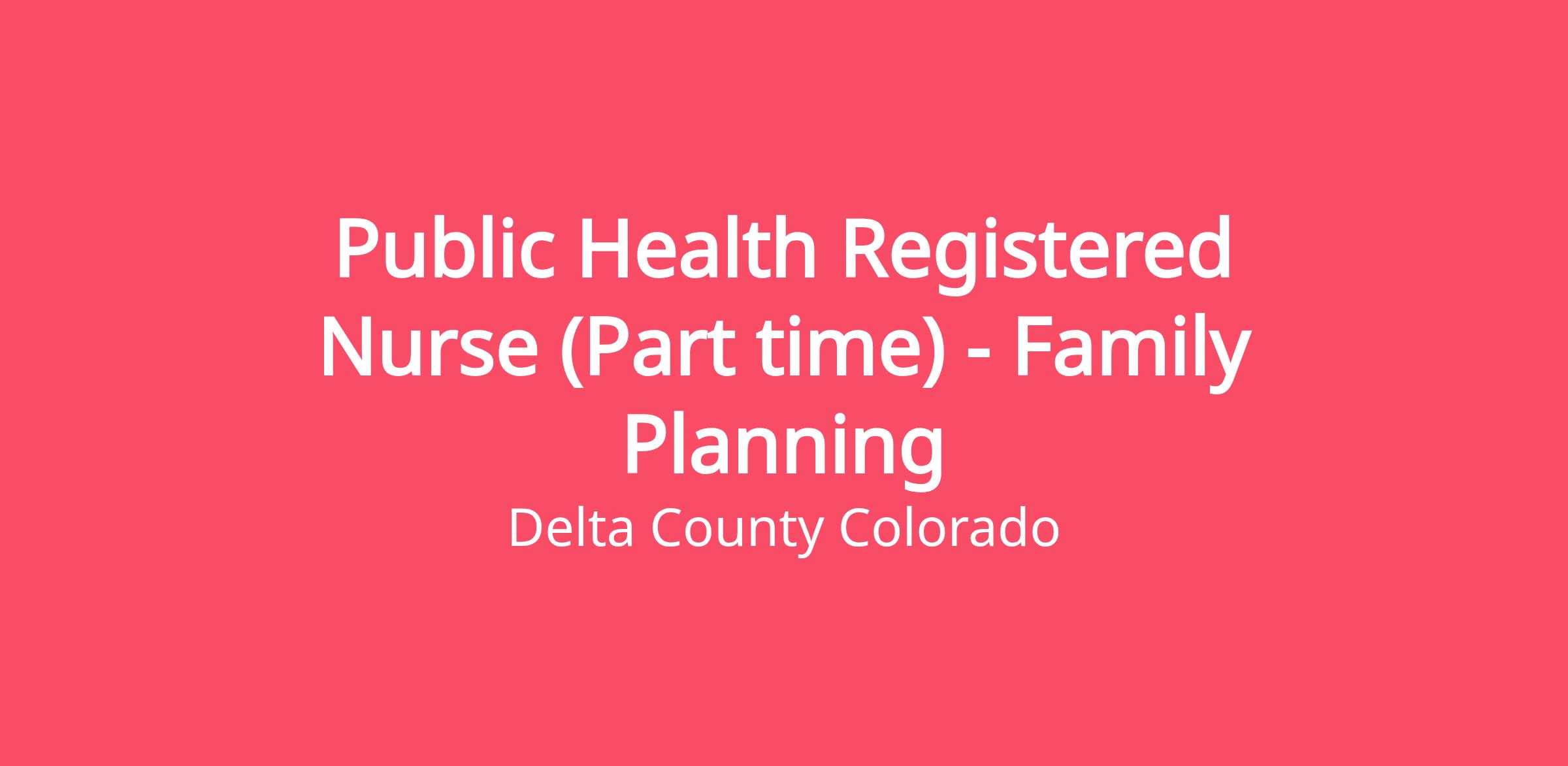 Provide comprehensive, unbiased nursing care across Delta County Health Department’s public health programs, with a focus on family planning services and support of communicable diseases and child health to ensure smooth clinic operations and high-quality community health services.