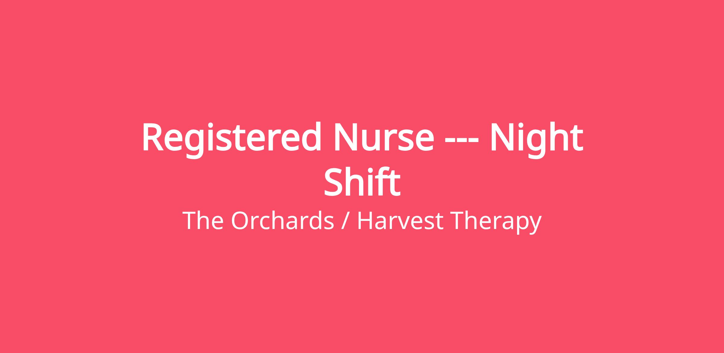 The Registered Nurse is responsible for nursing care and maintaining a safe abuse free environment for all residents throughout all Orchards campuses.