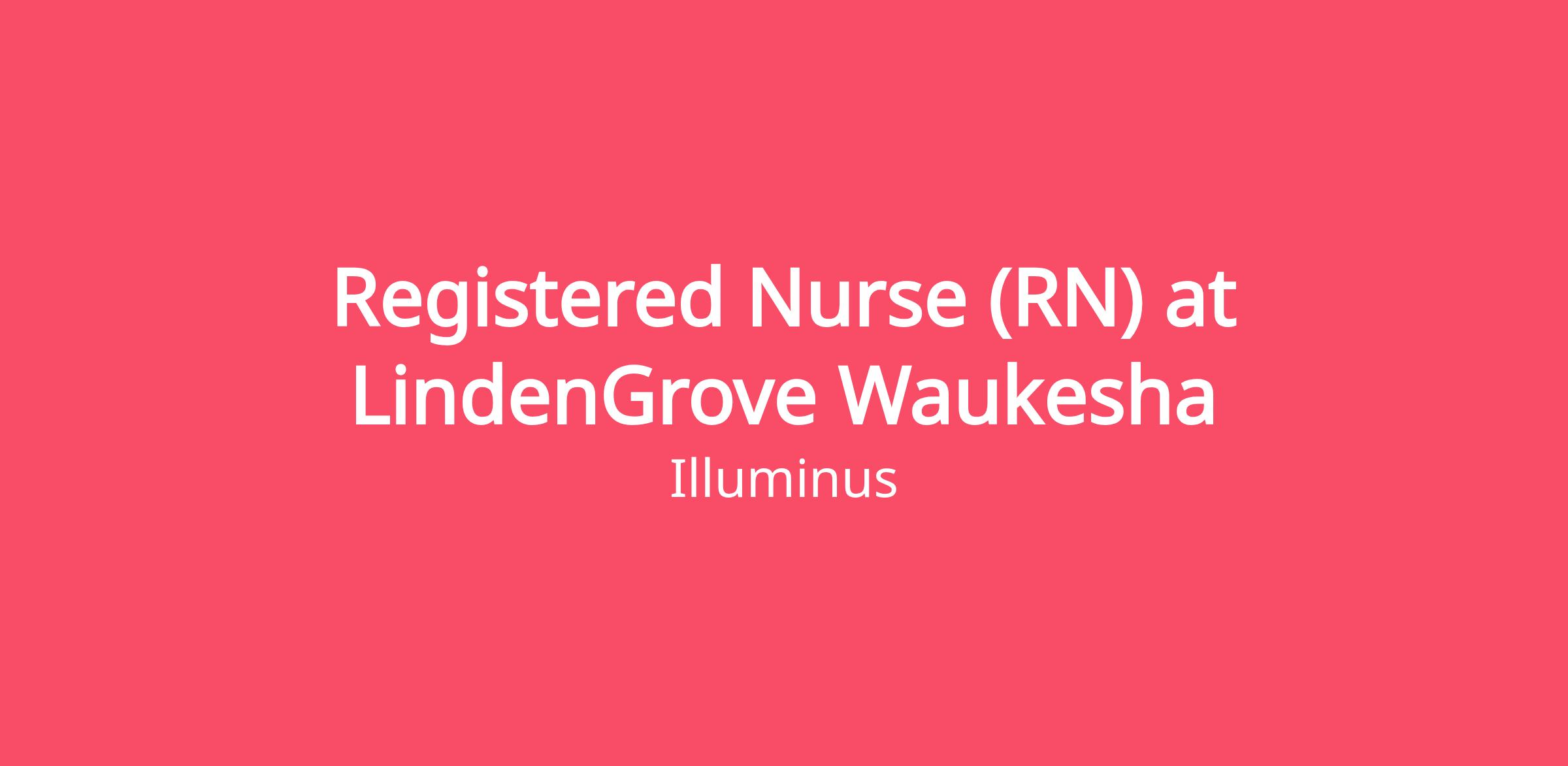 LindenGrove Waukesha, an Illuminus Community, is hiring a Registered Nurse RN. We offer assisted living, memory support, advanced assisted living, and short-term rehabilitation and long-term skilled nursing care to older adults. Our beautiful campus is nestled in a quiet residential neighborhood close to Waukesha Memorial Hospital and adjacent to Waukesha North High School. We are passionate about offering holistic, transformative care and helping those in need rediscover their light within.