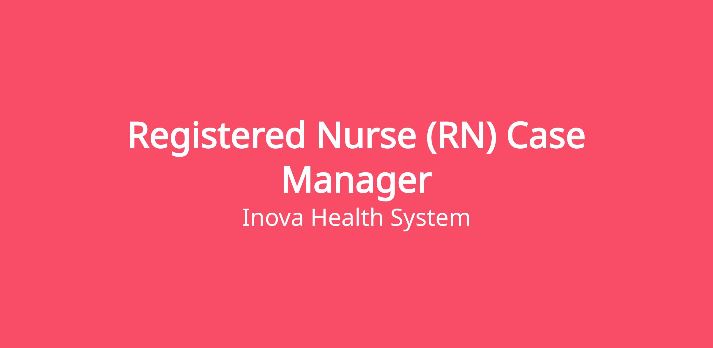 DescriptionInova Fair Oaks Hospital is looking for a dedicated Registered Nurse Case Manager to join the Case Management Team. This role will be Part-Time Day shift, 24 hours per week, Monday - Friday day shift schedule with rotating weekends and holidays.