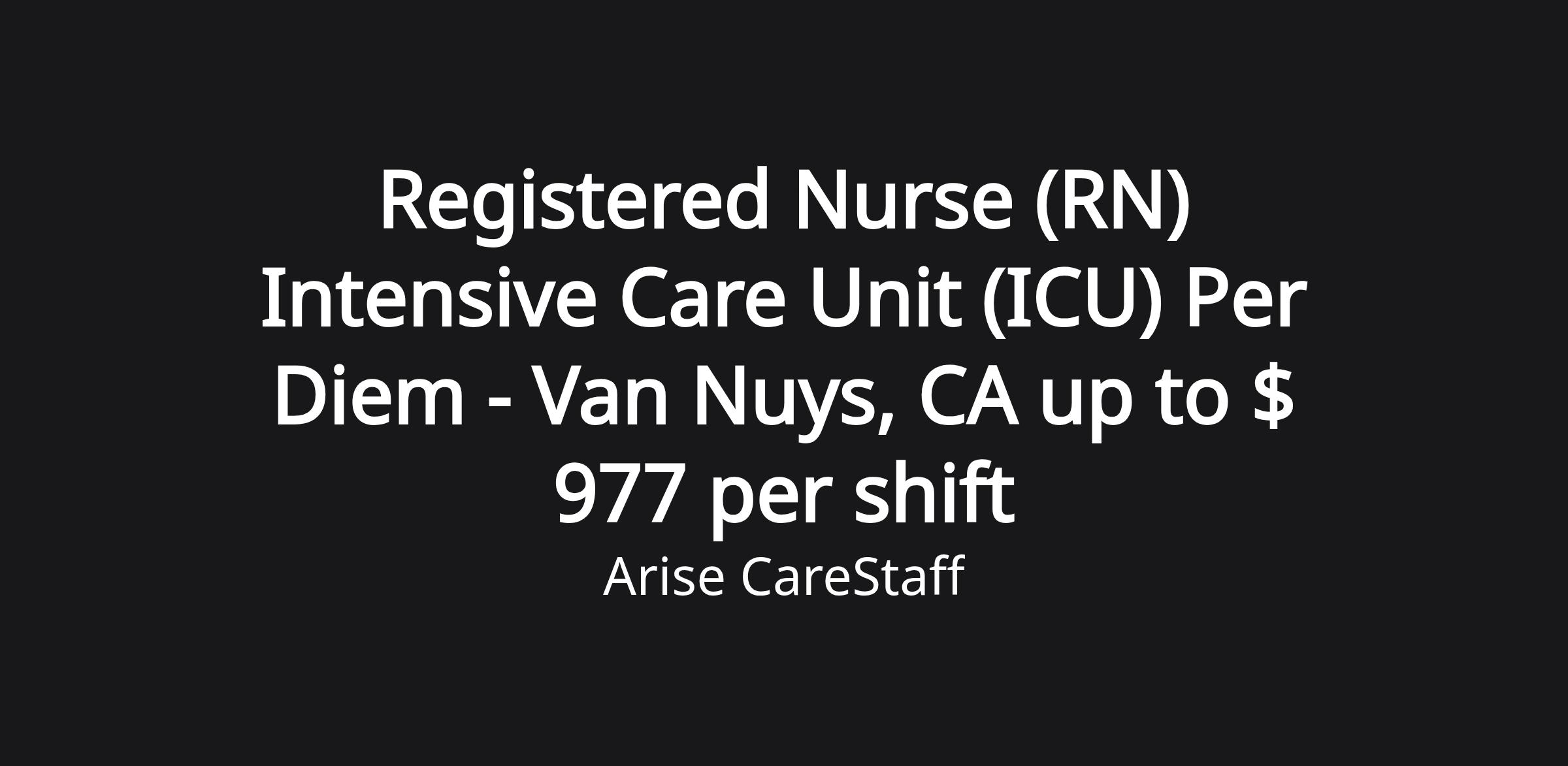 Arise CareStaff is hiring Intensive Care Unit (ICU) Registered Nurses (RN) to work for our client healthcare facility in Van Nuys, CA
