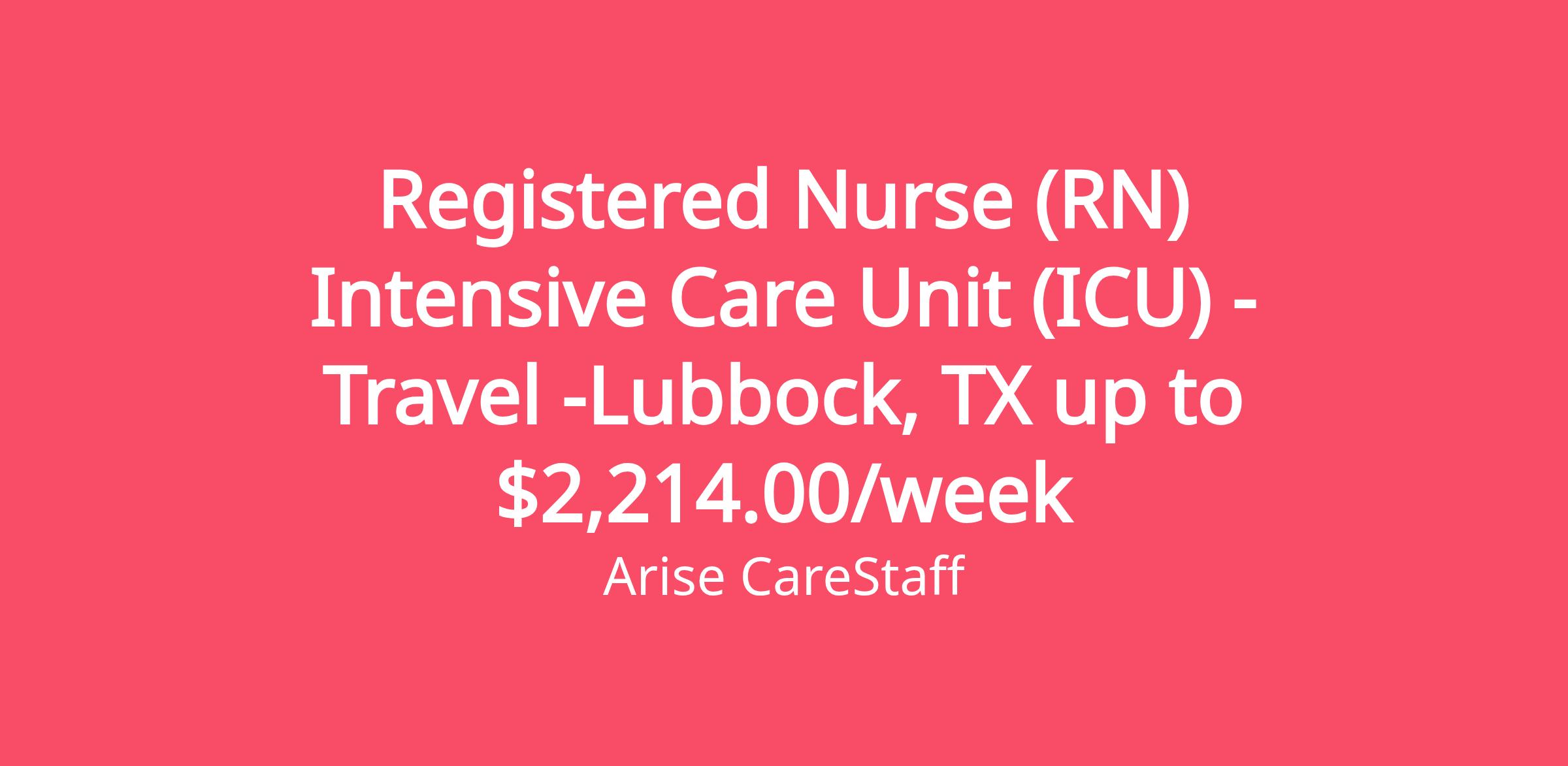 Arise CareStaff is hiring Intensive Care Unit (ICU) Registered Nurses (RN) to work for our client healthcare facility in Lubbock, TX
