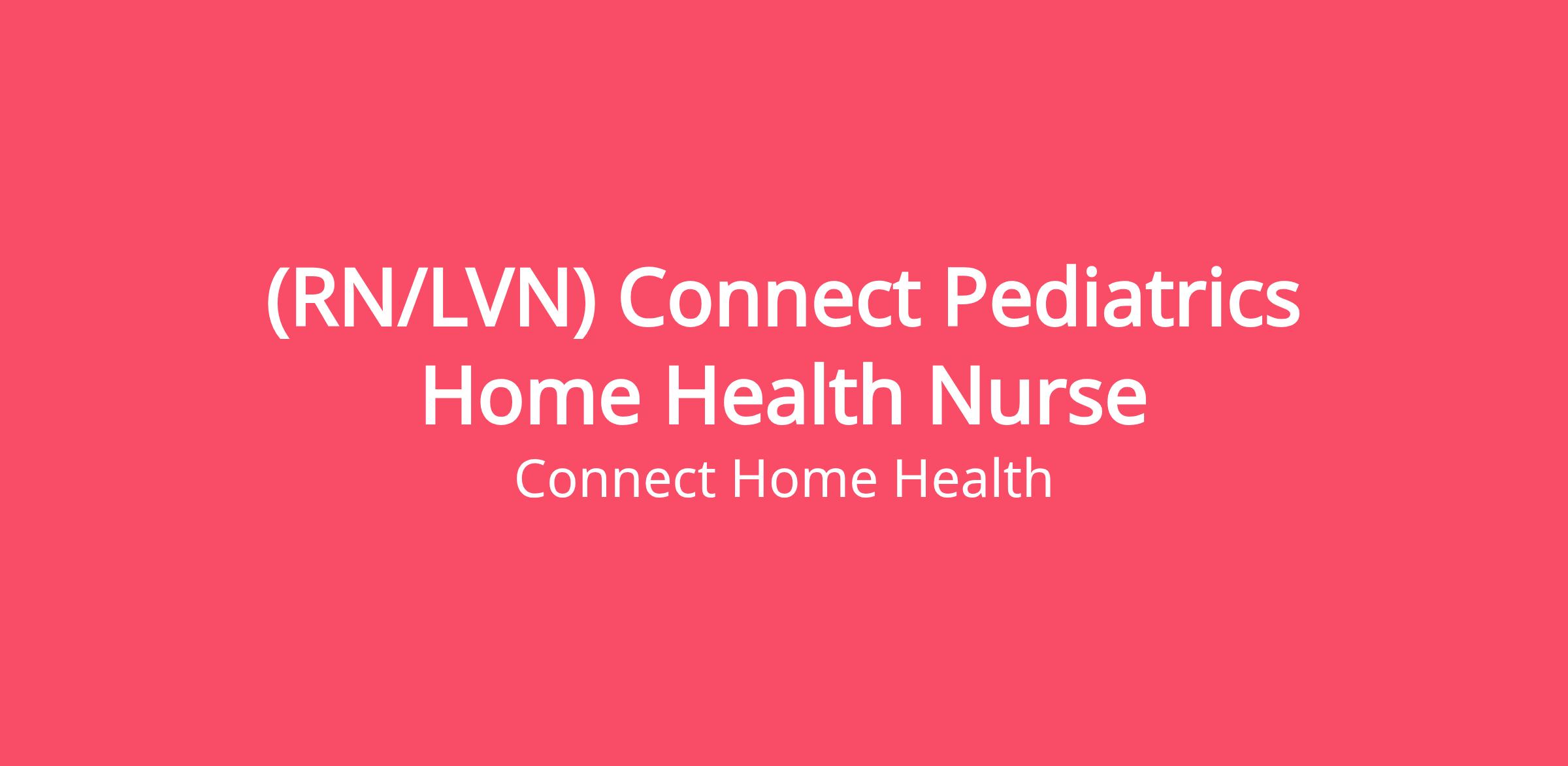 Connect Pediatrics Vision: Connect Pediatrics went from being the best-kept secret in Pediatric Home Health to becoming a key provider of Pediatric Private Duty Nursing across the state of Texas. We are nurse-owned and operated, which gives our team first-hand experience in the roles we ask our nurses to fill. We strive to be the preferred provider of care for our patients and the preferred employer for our talented team of clinicians. Connect Pediatrics is an equal-opportunity employer.