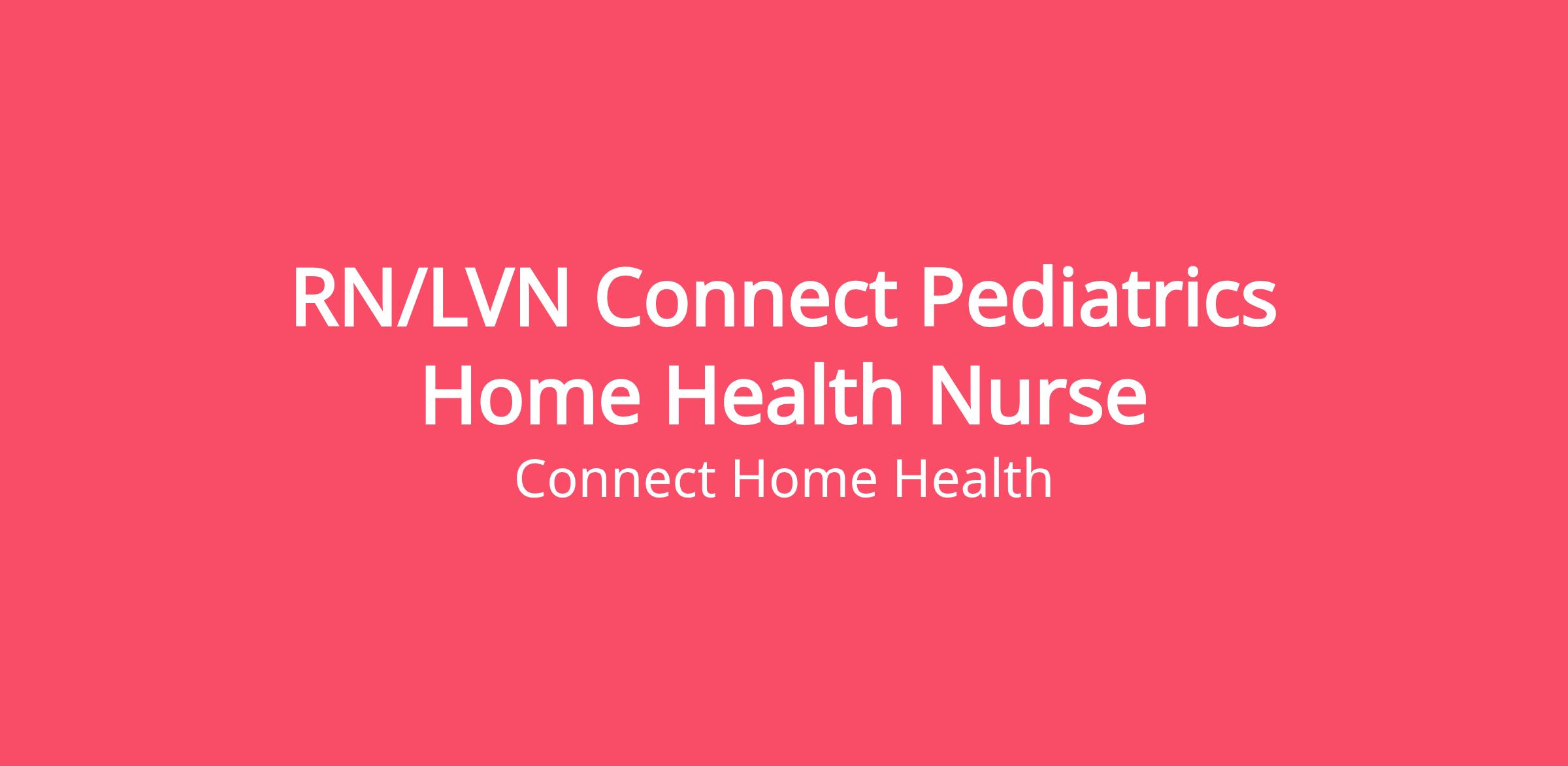 Connect Pediatrics Vision: Connect Pediatrics went from being the best-kept secret in Pediatric Home Health to becoming a key provider of Pediatric Private Duty Nursing across the state of Texas. We are nurse-owned and operated, which gives our team first-hand experience in the roles we ask our nurses to fill. We strive to be the preferred provider of care for our patients and the preferred employer for our talented team of clinicians. Connect Pediatrics is an equal-opportunity employer.